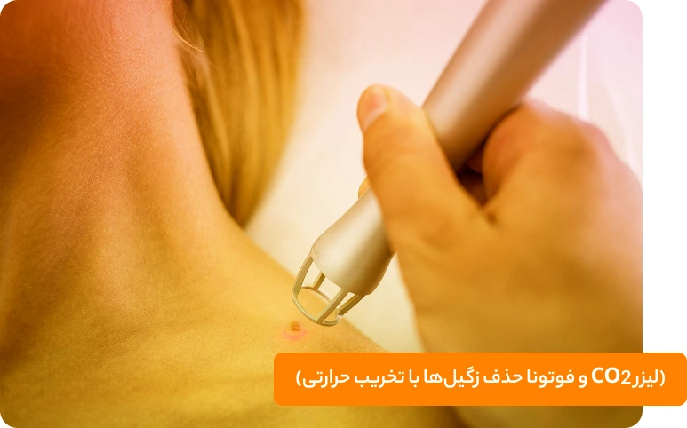 لیزرهای CO2 و فوتونا از روشهای مؤثر حذف زگیلها هستند که با تخریب حرارتی بافتهای آسیبدیده، باعث از بین رفتن سریع و دقیق زگیلها میشوند. این درمانها کمتهاجمی و با حداقل درد و خونریزی انجام میگیرند و معمولاً به دوره نقاهت کوتاهی نیاز دارند. استفاده از لیزر توسط پزشک متخصص و با تجهیزات پیشرفته، تضمینکننده ایمنی و اثربخشی درمان است.
